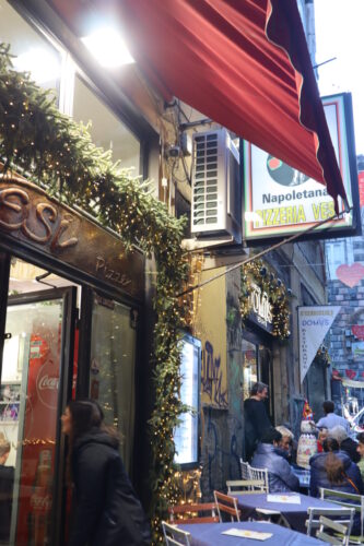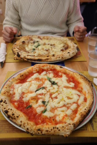 人が多くゴミもたくさん落ちている街中をスーツケースを引いて歩いていたこともあり、正直観光よりもホテルへ直行したくなっていたのですが、今日はイタリア最終日!ナポリでピザは外せない…!と思いgoogleで評価の高かった一番近いお店に向かいました!