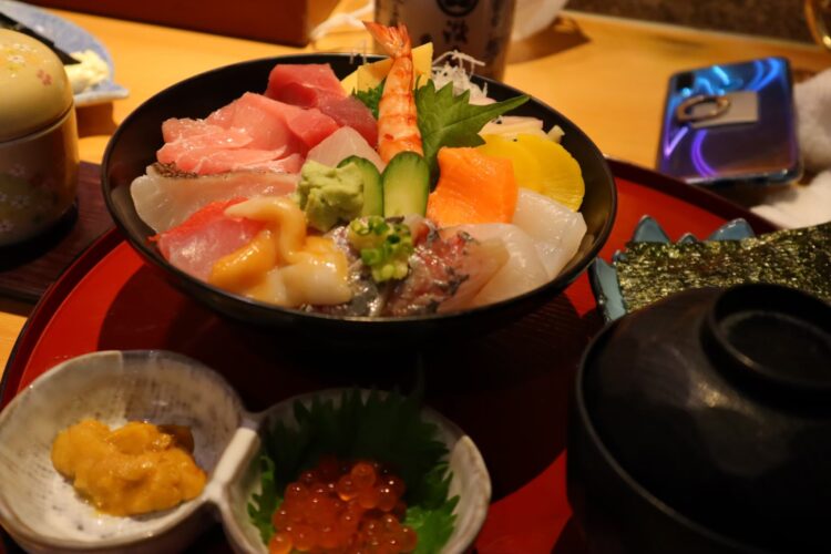 千葉で海鮮丼を調べていると出てきたのがこちらのお店!踏切のすぐ近くにあります お目当ての炙り海鮮丼はやっていませんでしたが、とっても大満足なランチをいただきました🐟 彩り豊かなこの海鮮丼を見てください!! まさにお魚の宝石箱や~✨